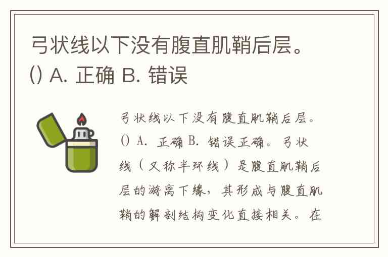 正确。弓状线(又称半环线)是腹直肌鞘后层的游离下缘,其形成与腹直肌鞘的解剖结构变化直接相关。在弓状线以上,腹直肌鞘后层由腹内斜肌腱膜的后叶与腹横肌腱膜共同构成;而在该线以下,这两层腱膜完全移至腹直肌前方,参与构成鞘的前层,导致后层缺如。此时腹直肌后面直接与腹横筋膜相贴,不再有后鞘覆盖。这一解剖特征在临床手术中具有重要意义,例如下腹部横切口需避开弓状线位置以减少损伤风险。