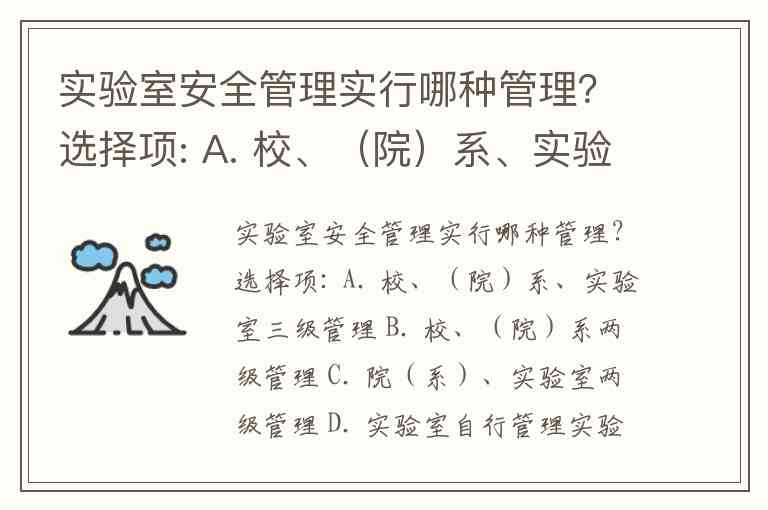 实验室安全管理实行哪种管理?选择项: A. 校、(院)系、实验室三级管理 B. 校、(院)系两级管理 C. 院(系)、实验室两级管理 D. 实验室自行管理
