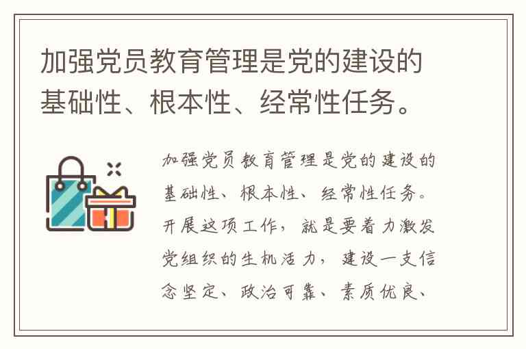 加强党员教育管理的核心价值在于通过系统性培养,锻造政治坚定、素质优良的党员队伍,进而增强党组织的凝聚力与战斗力。这一工作以习近平新时代中国特色社会主义思想为指导,以党章为根本遵循,通过思想建党、理论强党与制度治党相结合的方式,确保党始终保持先进性和纯洁性。从选项来看,C. 永葆党性纯洁,增强党员和党组织战斗力最准确体现了其核心目标。