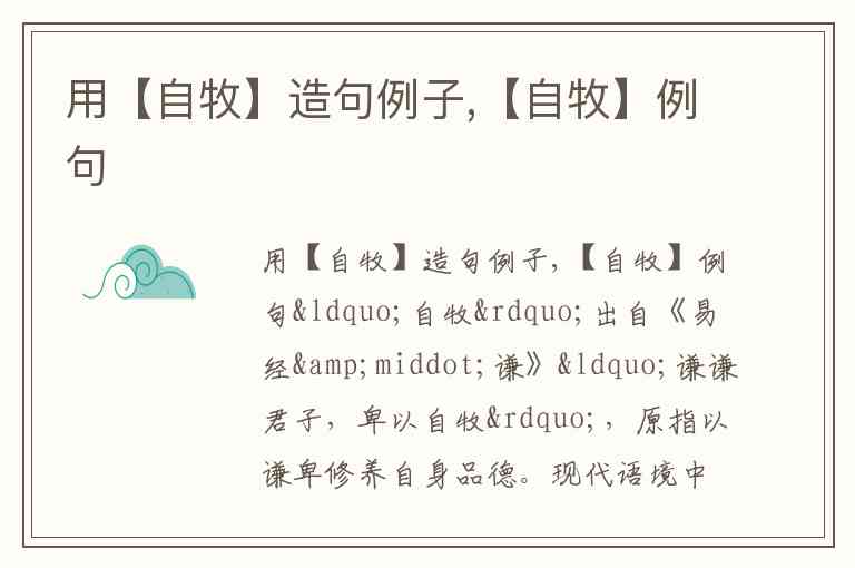 这些例句覆盖从古典典籍到现代生活的应用场景,既保留“谦卑自守”的核心义,又拓展出“主动管理”的新内涵。你觉得在快节奏的当下,“自牧”精神该如何与效率至上的价值观平衡?