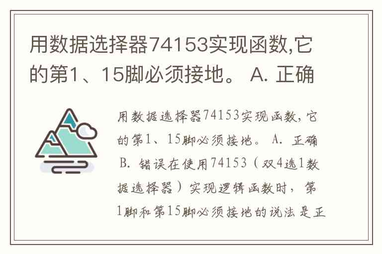 用数据选择器74153实现函数,它的第1、15脚必须接地。 A. 正确 B. 错误