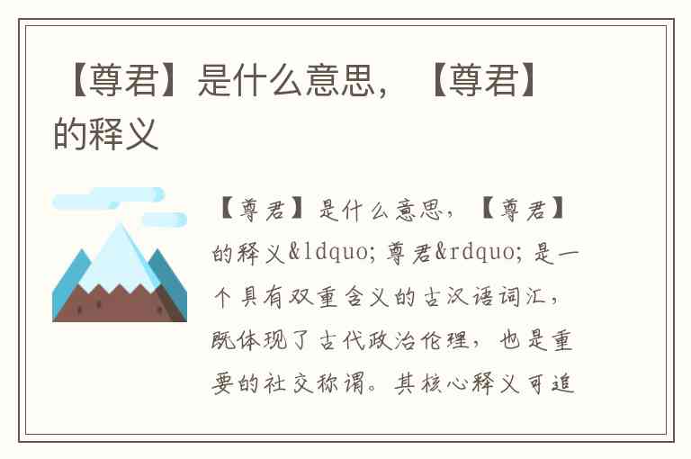 “尊君”是一个具有双重含义的古汉语词汇,既体现了古代政治伦理,也是重要的社交称谓。其核心释义可追溯至先秦文献,在不同语境中展现出对权力与亲情的双重敬意。