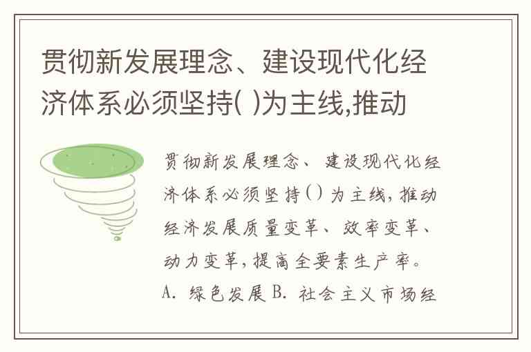 贯彻新发展理念、建设现代化经济体系必须坚持( )为主线,推动经济发展质量变革、效率变革、动力变革,提高全要素生产率。 A. 绿色发展 B. 社会主义市场经济体制改革 C. 对外开放 D. 供给侧结构性改革