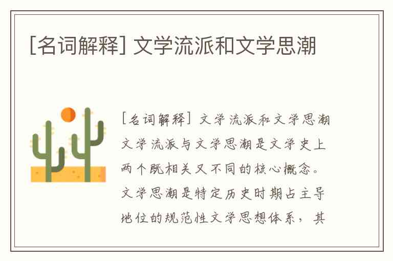 [名词解释] 文学流派和文学思潮