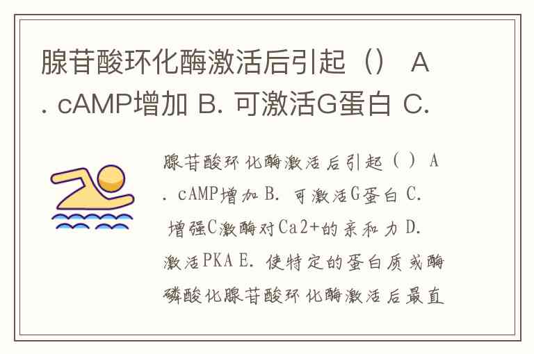 腺苷酸环化酶激活后引起() A. cAMP增加 B. 可激活G蛋白 C. 增强C激酶对Ca2+的亲和力 D. 激活PKA E. 使特定的蛋白质或酶磷酸化