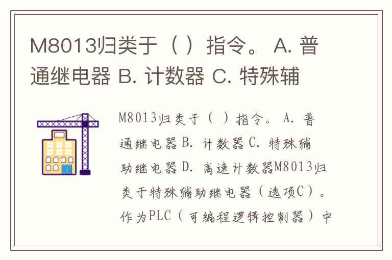 M8013归类于( )指令。 A. 普通继电器 B. 计数器 C. 特殊辅助继电器 D. 高速计数器