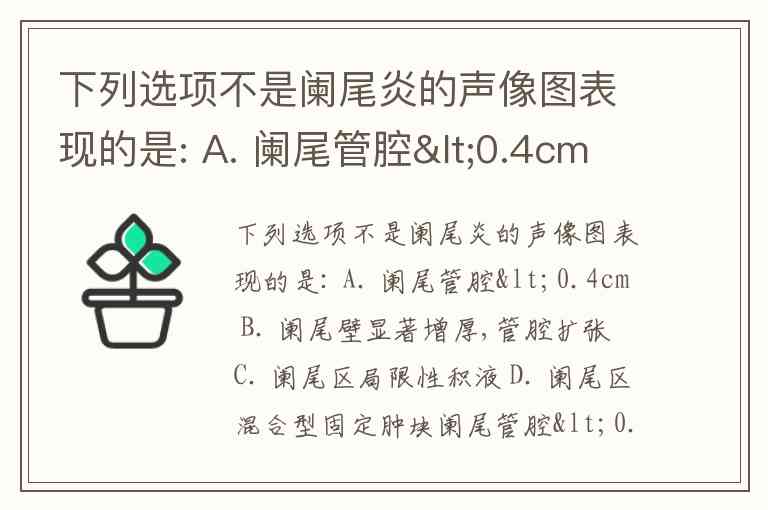 下列选项不是阑尾炎的声像图表现的是: A. 阑尾管腔<0.4cm B. 阑尾壁显著增厚,管腔扩张 C. 阑尾区局限性积液 D. 阑尾区混合型固定肿块
