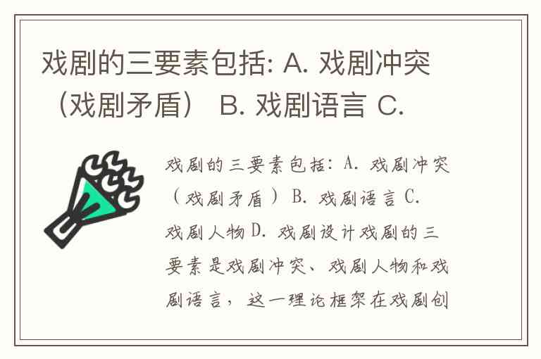 戏剧的三要素包括: A. 戏剧冲突(戏剧矛盾) B. 戏剧语言 C. 戏剧人物 D. 戏剧设计