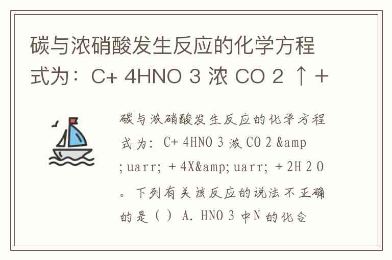 碳与浓硝酸的反应是典型的氧化还原反应,化学方程式为 C + 4HNO₃(浓) =△= CO₂↑ + 4NO₂↑ + 2H₂O 。通过分析反应原理和各选项细节,可得出不正确的说法是 C选项。