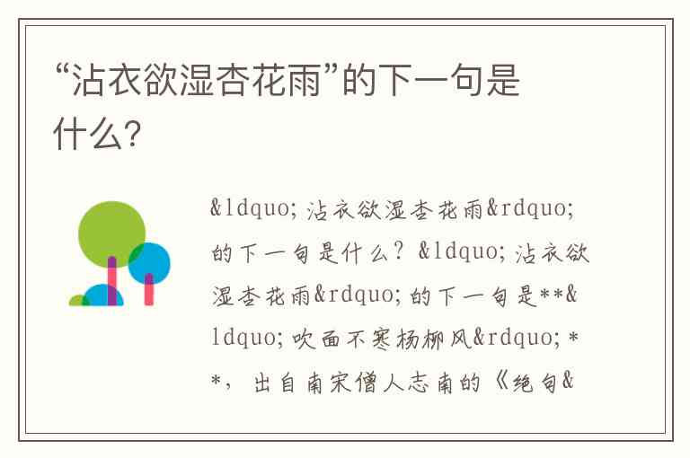 “沾衣欲湿杏花雨”的下一句是什么?