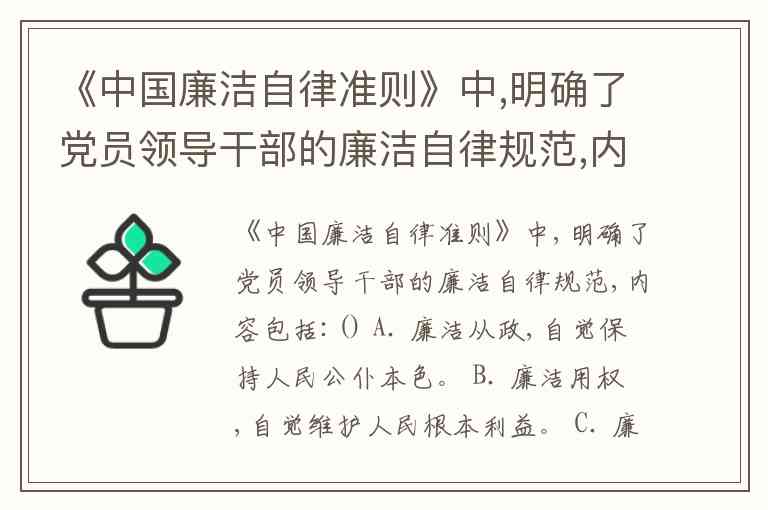 《中国廉洁自律准则》中,明确了党员领导干部的廉洁自律规范,内容包括:() A. 廉洁从政,自觉保持人民公仆本色。 B. 廉洁用权,自觉维护人民根本利益。 C. 廉洁修身,自觉提升思想道德境界。 D. 廉洁齐家,自觉带头树立良好家风。