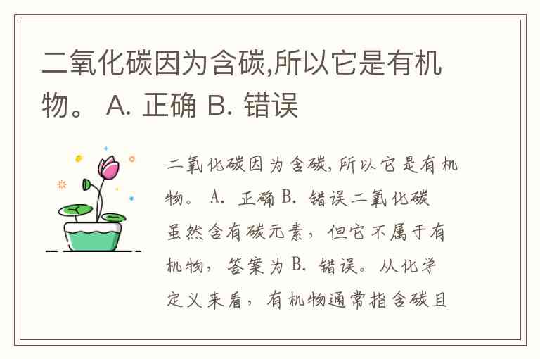 二氧化碳因为含碳,所以它是有机物。 A. 正确 B. 错误