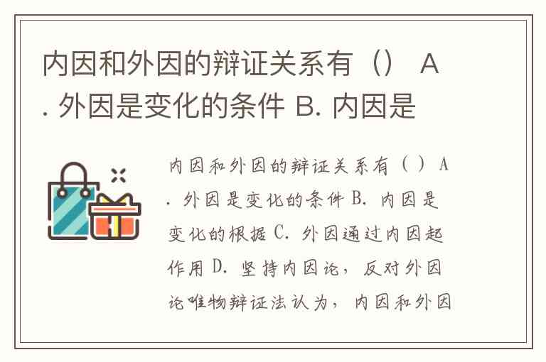 内因和外因的辩证关系有() A. 外因是变化的条件 B. 内因是变化的根据 C. 外因通过内因起作用 D. 坚持内因论,反对外因论