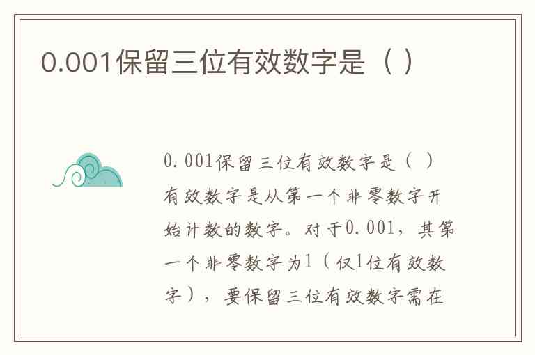 有效数字是从第一个非零数字开始计数的数字。对于0.001,其第一个非零数字为1(仅1位有效数字),要保留三位有效数字需在1后补两位有效数字。根据规则,应表示为1.00×10⁻³(科学计数法可明确三位有效数字:1、0、0),或直接写为0.00100(末尾两个0为有效数字)。两种形式均满足三位有效数字要求,其中科学计数法更能避免小数点前的0被误读。