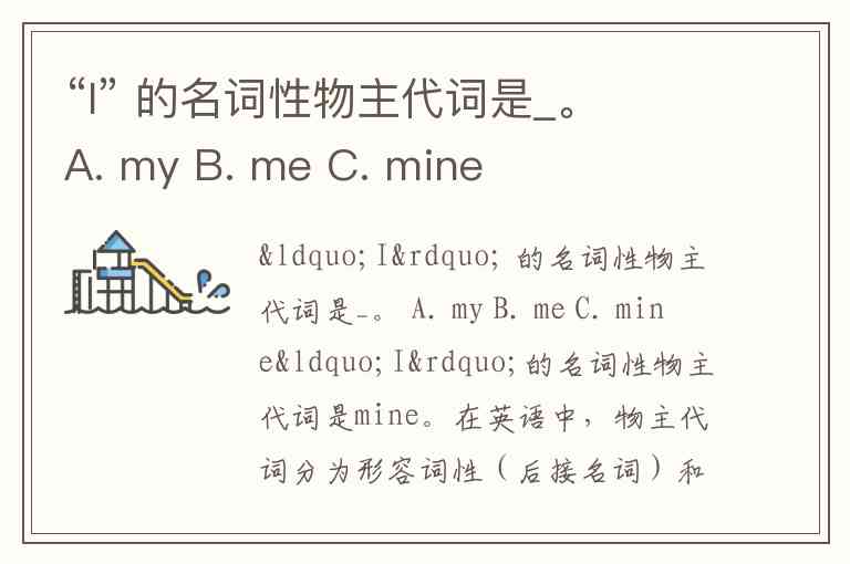 “I” 的名词性物主代词是_。 A. my B. me C. mine