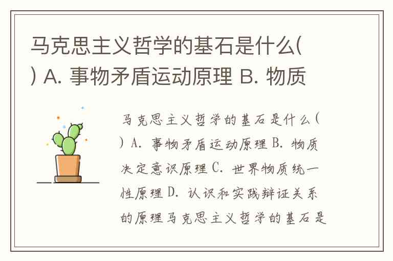马克思主义哲学的基石是什么( ) A. 事物矛盾运动原理 B. 物质决定意识原理 C. 世界物质统一性原理 D. 认识和实践辩证关系的原理