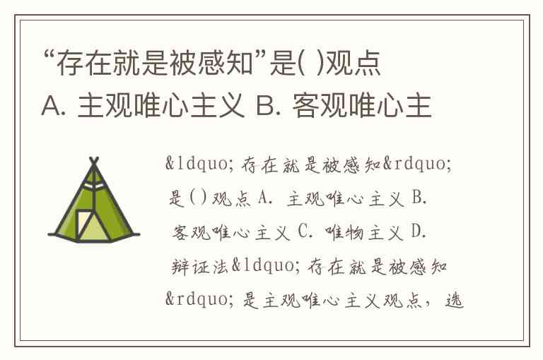 “存在就是被感知”是( )观点 A. 主观唯心主义 B. 客观唯心主义 C. 唯物主义 D. 辩证法