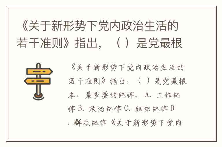 《关于新形势下党内政治生活的若干准则》指出,( )是党最根本、最重要的纪律。 A. 工作纪律 B. 政治纪律 C. 组织纪律 D. 群众纪律