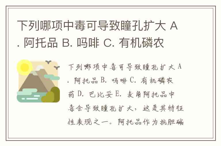 下列哪项中毒可导致瞳孔扩大 A. 阿托品 B. 吗啡 C. 有机磷农药 D. 巴比妥 E. 麦角