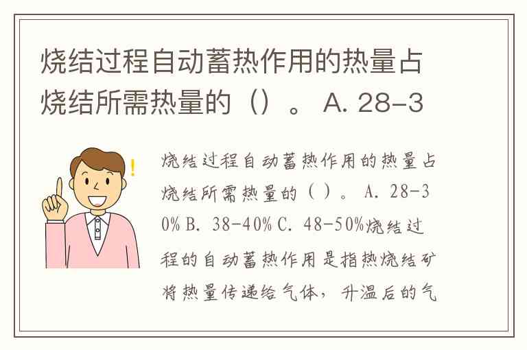 烧结过程自动蓄热作用的热量占烧结所需热量的()。 A. 28-30% B. 38-40% C. 48-50%