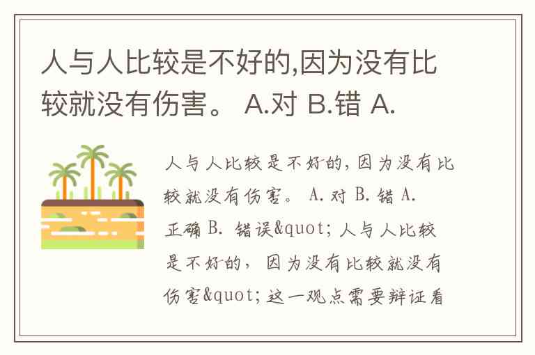"人与人比较是不好的,因为没有比较就没有伤害"这一观点需要辩证看待,答案应为 B. 错误。