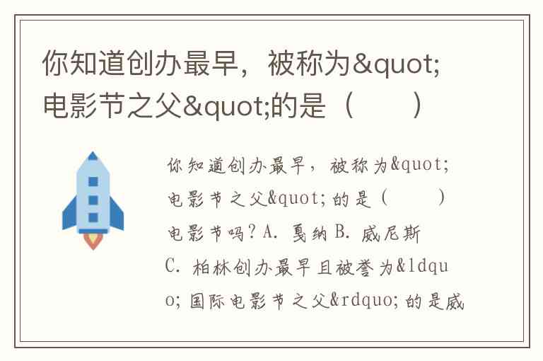 你知道创办最早,被称为"电影节之父"的是( )电影节吗? A. 戛纳 B. 威尼斯 C. 柏林