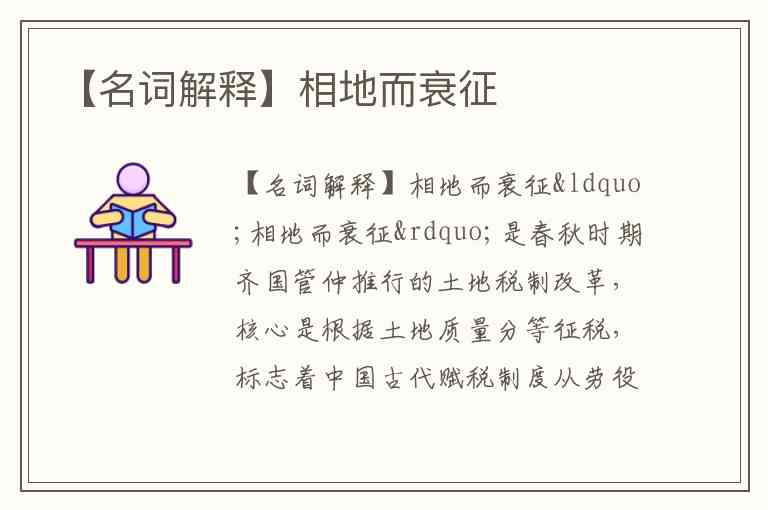 “相地而衰征”是春秋时期齐国管仲推行的土地税制改革,核心是根据土地质量分等征税,标志着中国古代赋税制度从劳役地租向实物地租的关键转型。这一政策最早记载于《国语·齐语》,韦昭注曰“相,视也;衰,等差也;征,征取也”,即通过评估土地肥力、灌溉条件和产量,将耕地划分为上、中、下三等,按等级制定差异化税率,上等田多征、下等田少征,例如上等田可能征收产量的15%,下等田仅5%。