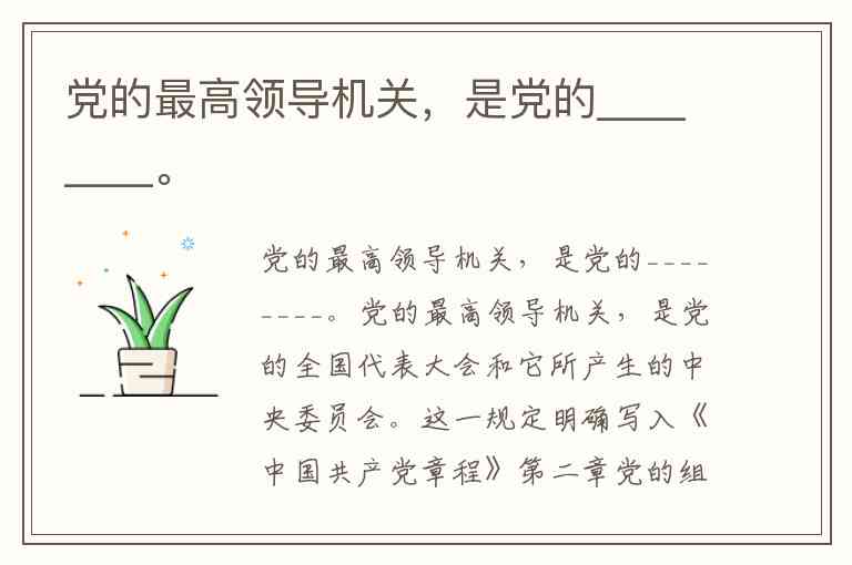 党的最高领导机关,是党的________。
