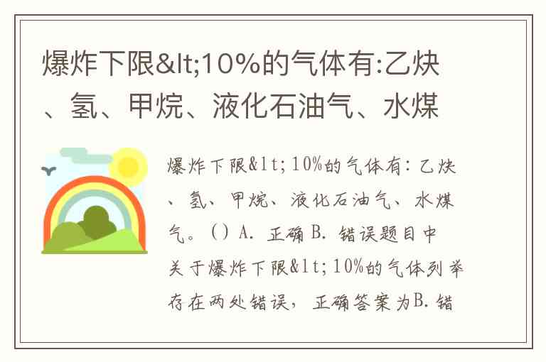 题目中关于爆炸下限<10%的气体列举存在两处错误,正确答案为B.错误。