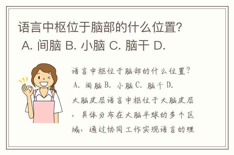 语言中枢位于脑部的什么位置? A. 间脑 B. 小脑 C. 脑干 D. 大脑皮层
