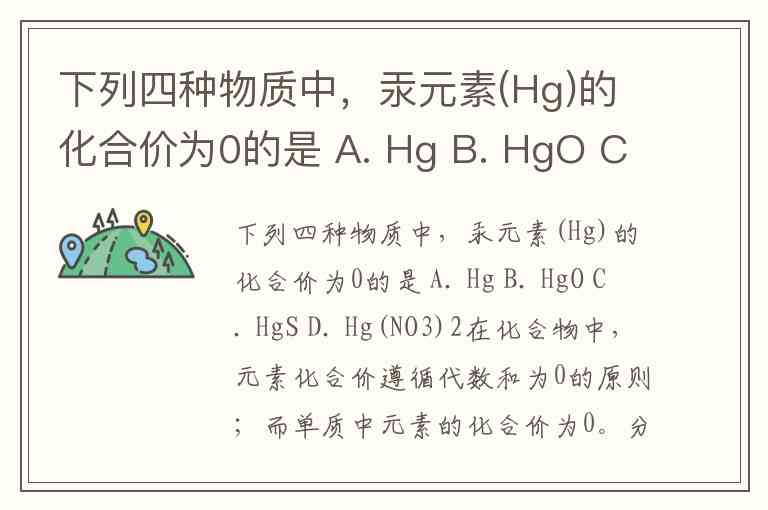 下列四种物质中,汞元素(Hg)的化合价为0的是 A. Hg B. HgO C. HgS D. Hg(NO3)2