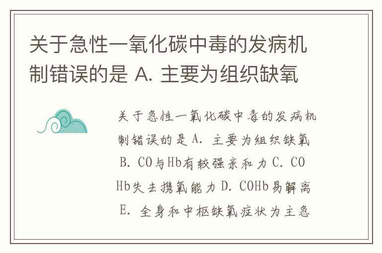 A. 主要为组织缺氧:COHb形成及细胞色素氧化酶抑制共同导致组织缺氧;