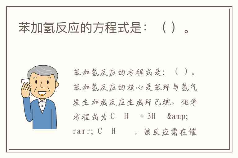 苯加氢反应的方程式是:( )。