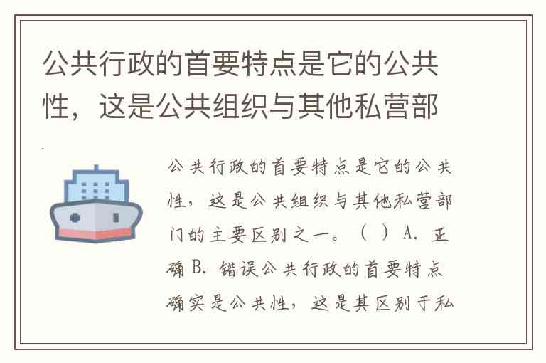 公共行政的首要特点是它的公共性,这是公共组织与其他私营部门的主要区别之一。( ) A. 正确 B. 错误