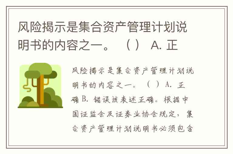风险揭示是集合资产管理计划说明书的内容之一。 ( ) A. 正确 B. 错误