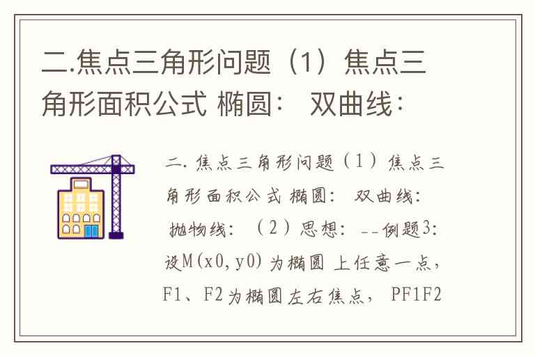 椭圆:设椭圆方程为 (),焦点三角形 中,,则面积公式有三种形式: