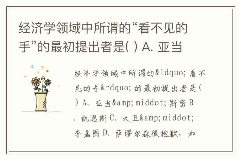 经济学领域中所谓的“看不见的手”的最初提出者是( ) A. 亚当·斯密 B. 凯恩斯 C. 大卫·李嘉图 D. 萨谬尔森