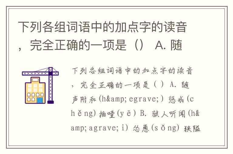 要判断加点字读音完全正确的一项,需逐一核对各选项中易错字的读音: