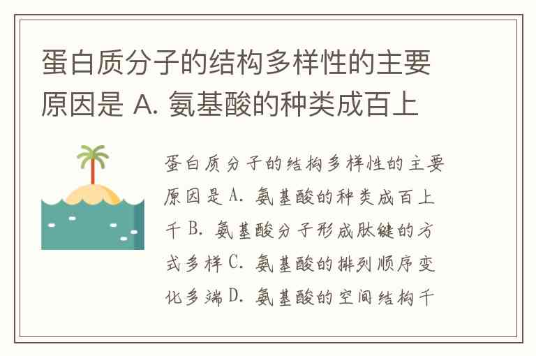 蛋白质分子的结构多样性的主要原因是 A. 氨基酸的种类成百上千 B. 氨基酸分子形成肽键的方式多样 C. 氨基酸的排列顺序变化多端 D. 氨基酸的空间结构千差万别