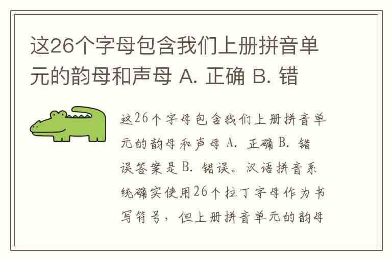 答案是 B. 错误。汉语拼音系统确实使用26个拉丁字母作为书写符号,但上册拼音单元的韵母和声母并不直接等同于这26个字母。