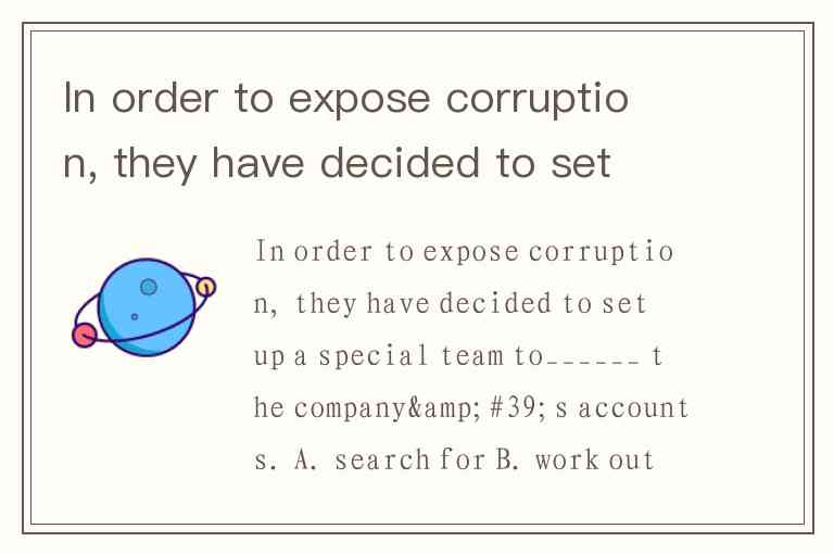 In order to expose corruption, they have decided to set up a special team to______ the company's accounts. A. search for B. work out C. look into D. sum up