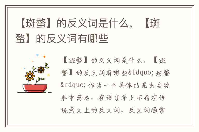 【斑蝥】的反义词是什么,【斑蝥】的反义词有哪些