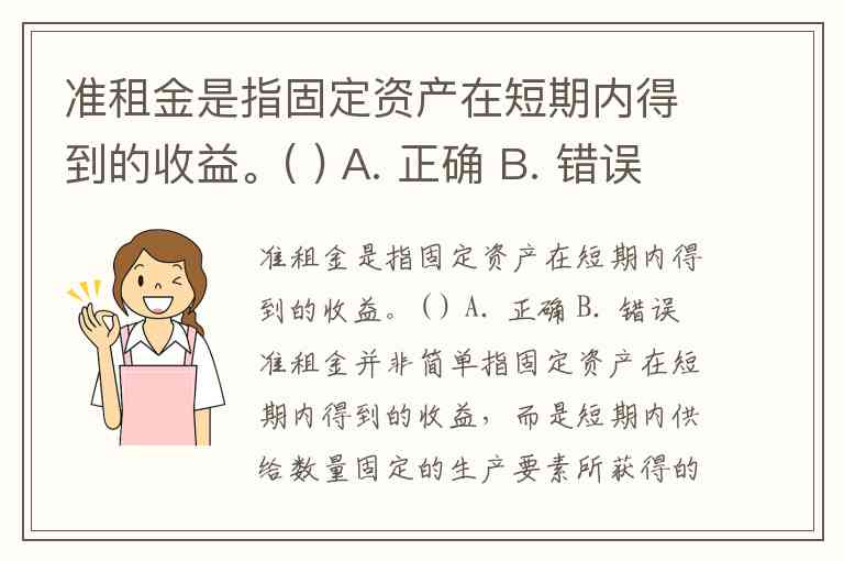 准租金是指固定资产在短期内得到的收益。( ) A. 正确 B. 错误