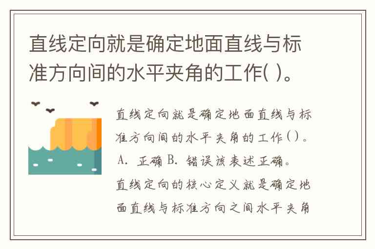 直线定向就是确定地面直线与标准方向间的水平夹角的工作( )。 A. 正确 B. 错误