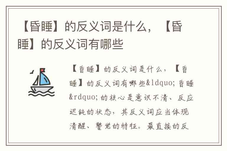 “昏睡”的核心是意识不清、反应迟钝的状态,其反义词应当体现清醒、警觉的特征。最直接的反义词是清醒,此外还有警醒、苏醒、清醒、警觉、清醒等,具体使用需结合语境侧重。