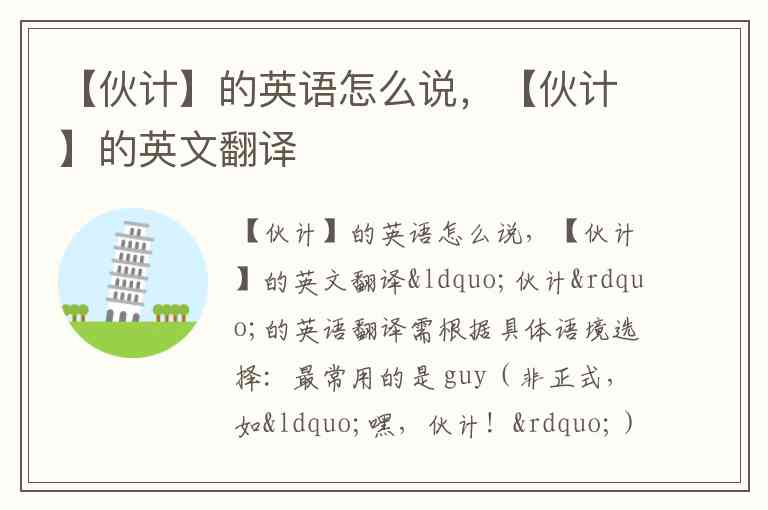 【伙计】的英语怎么说,【伙计】的英文翻译