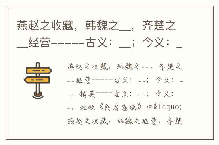 燕赵之收藏,韩魏之__,齐楚之__经营-----古义:__;今义:__。精英----古义:__;今义:__。