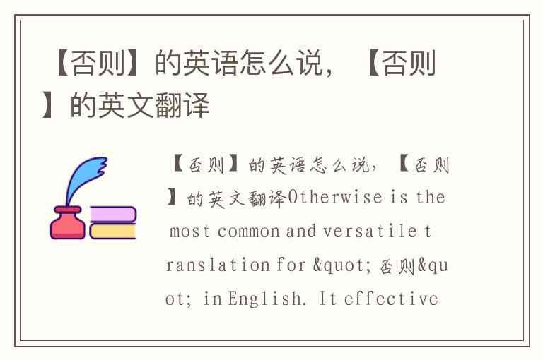 Otherwise is the most common and versatile translation for "否则" in English. It effectively conveys the meaning of "if not" or "under other circumstances," establishing a conditional relationship between two ideas.