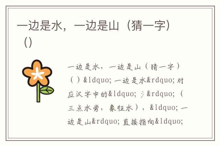 “一边是水”对应汉字中的“氵”(三点水旁,象征水),“一边是山”直接指向“山”字。将这两部分组合,便形成左右结构的“汕”字。