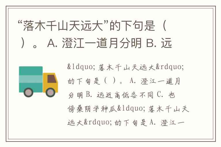 “落木千山天远大”的下句是( )。 A. 澄江一道月分明 B. 远近高低各不同 C. 也傍桑阴学种瓜